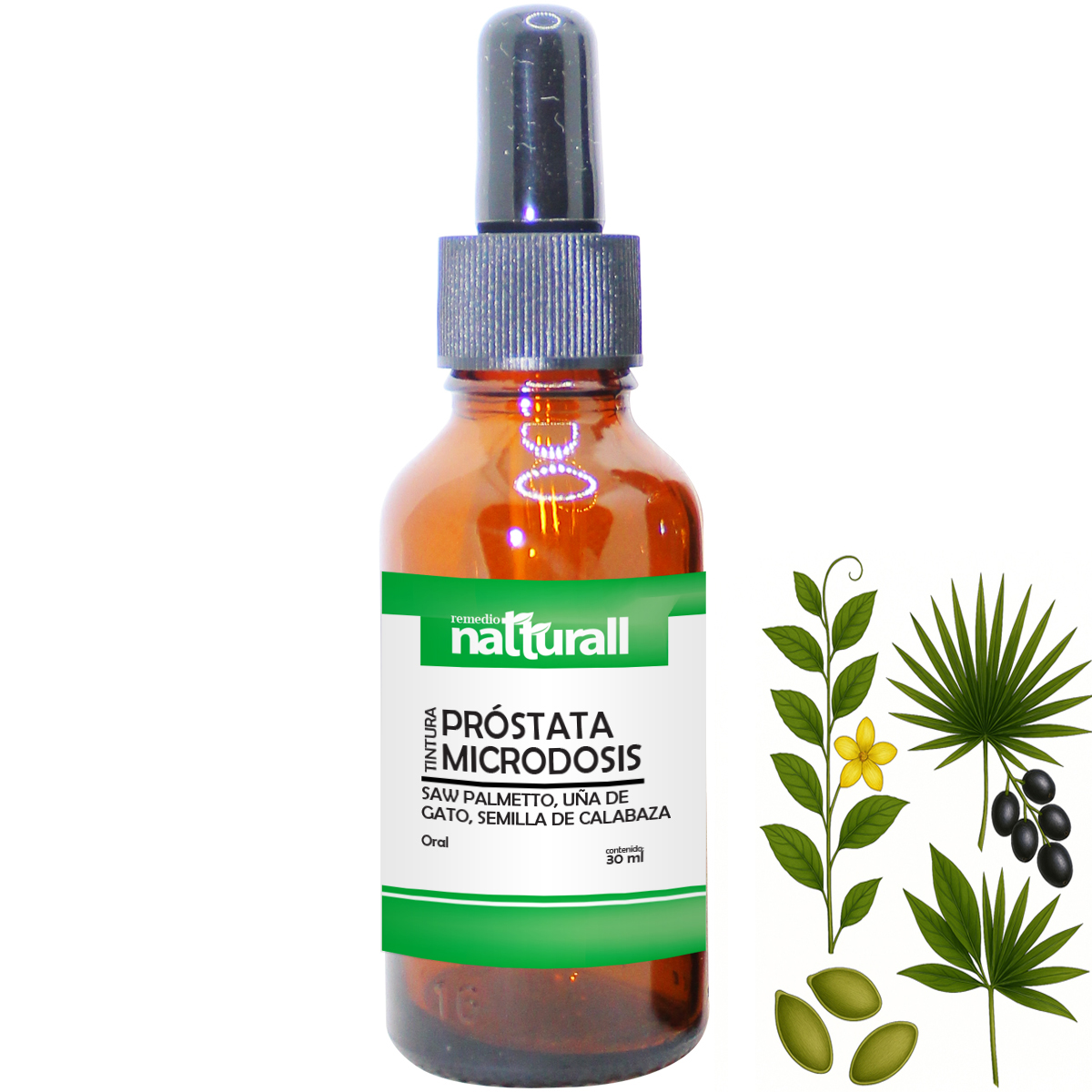 • Uña de Gato (Uncaria tomentosa): potente planta medicinal con propiedades inmunomoduladoras y antioxidantes. Apoya al sistema inmunológico para combatir inflamaciones, infecciones y procesos degenerativos relacionados con la próstata.